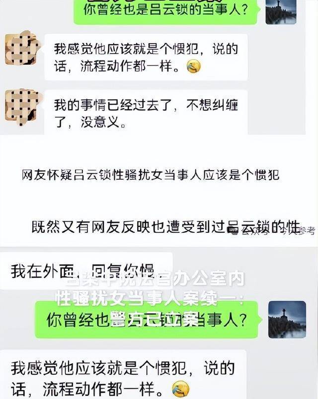 有其他受害者和王女士透露自己也曾有类似遭遇,吕某就是个官惯犯,对其他女生说的话,下手的流程几乎一样。