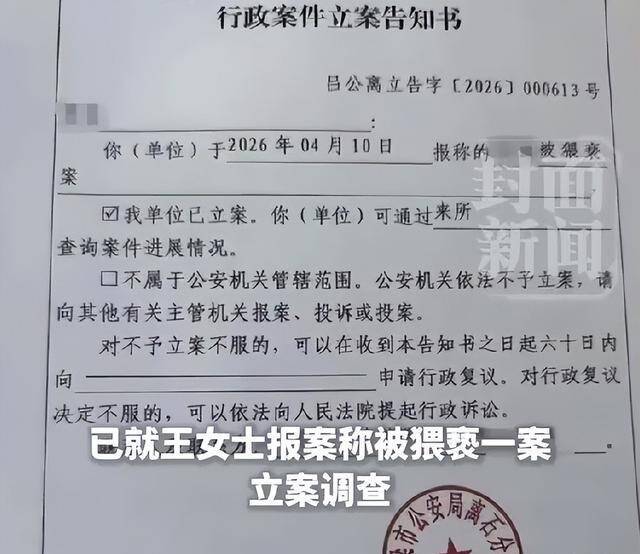 4月10日,经王女士报案后,吕梁市公安局离石分局西属巴派出所已对该案进行行政立案。